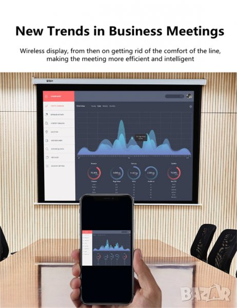 За директна връзка с телевизор и смартфон, таблет или лаптоп (с WiFi). Поддържа Android и iOS, включване в USB буксата.