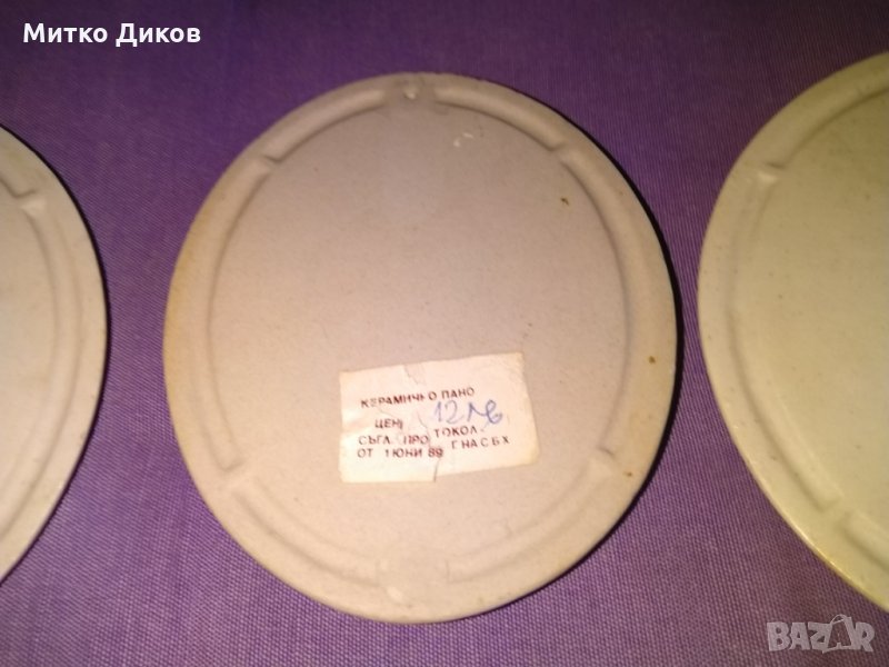 Керамични пана 3 броя от 1989г на Съюза на Бълг Художници-ръчно изработени 136х115мм-един брой е15лева -трите за 30лева -вижте на дребно тогава цената е била 12лева--в много добро състояние-изпращам по еконт-по спиди
