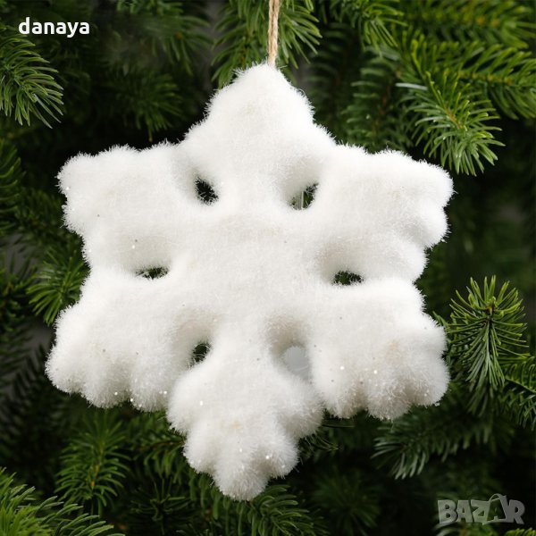 Снежнобяла пухеста снежинка, която свети в нежни светлинки. Коледна играчка, която има връвка за закачане, може да се закачи на голяма коледна елха или на друг предмет. Чудесно се допълва към гирлянди. Създава весело коледно настроение, където и да я закачиш.