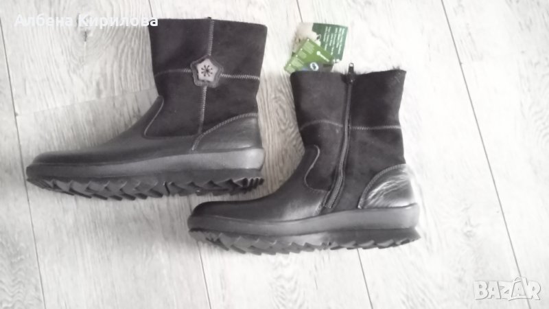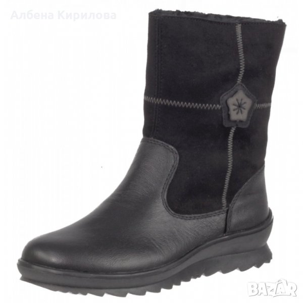 Нови немски боти на марката Ремонте, 38 номер. Топли и удобни, на равно зимно ходило, с грайфер при пета 4 см, отпред под пръсти 2 см. С цип и декорация в/у велур. Високи 16 см от ходило отзад и обиколка около глезен 15 см. Намалени от 179лв, под себестойност.
