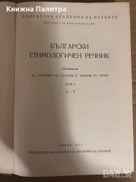 Български етимологичен речник. Том 1: А-З , снимка 1 - Чуждоезиково обучение, речници - 34544648 Български етимологичен речник. Том 1: А-З , снимка 2 - Чуждоезиково обучение, речници - 34544648 1/2