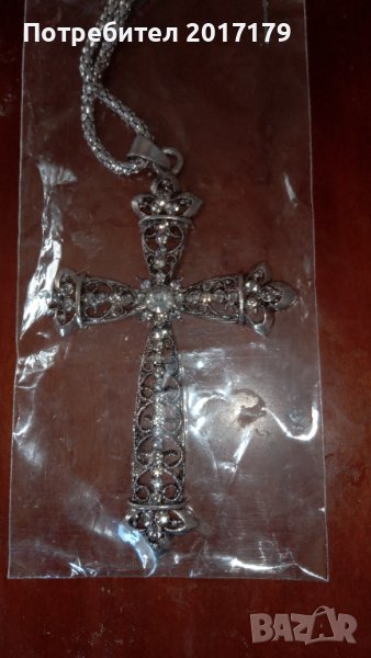синджир с голям кръст камъни тип Сваровски колие медальон → Обява 34545335