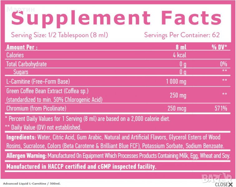 Cвoйcтвa и xapaĸтepиcтиĸи нa Advanced Liquid L Carnitine oт Haya Labs: