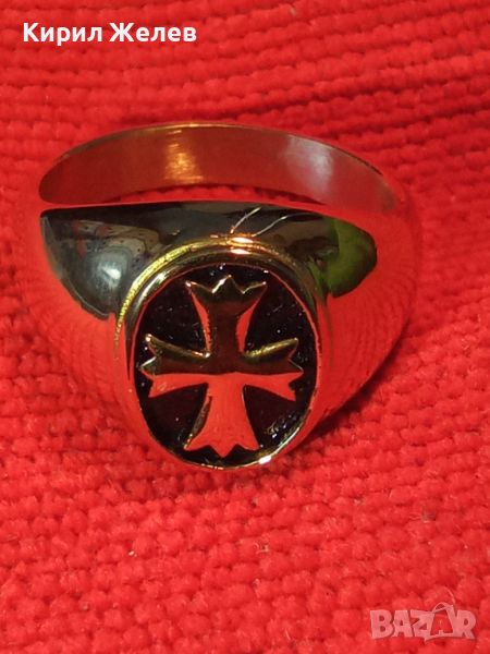 СТОМАНЕН ПОЗЛАТЕН с КРЪСТ МОДЕН КРАСИВ СТИЛЕН ПРЪСТЕН 25024