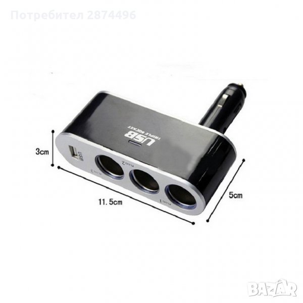 РАЗКЛОНИТЕЛ ЗА ЗАПАЛКА НА АВТОМОБИЛ С 3 ГНЕЗДА И USB