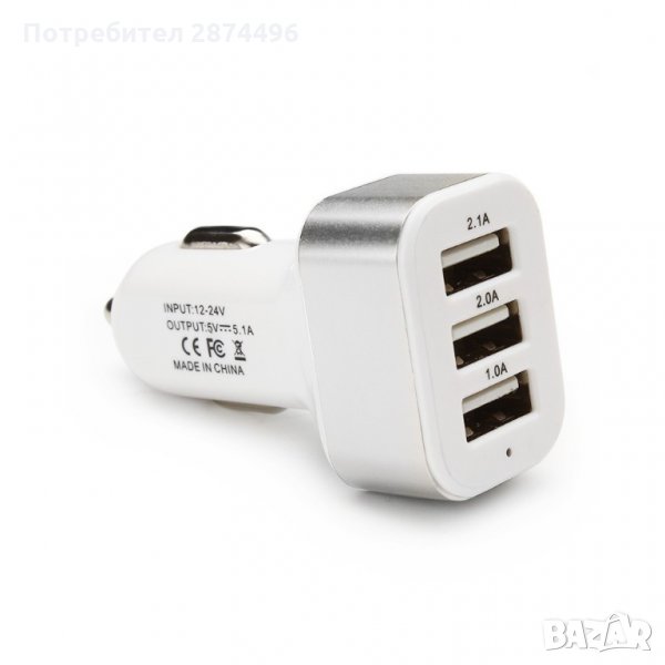 Троен USB разклонител за автомобилна запалка 2.1A 2A 1A