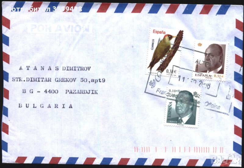 Пътувал плик с марки Фауна Птица 2008 Крал хуан Карлос от Испания.