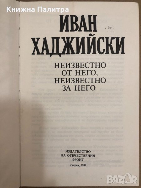 Иван Хаджийски. Неизвестно от него, неизвестно за него → Обява 34558597