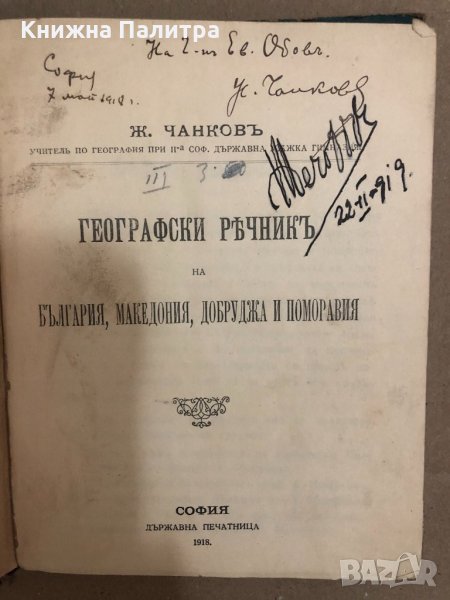 Географски речникъ на България- Жечо Чанков-1918г. → Обява 34558640