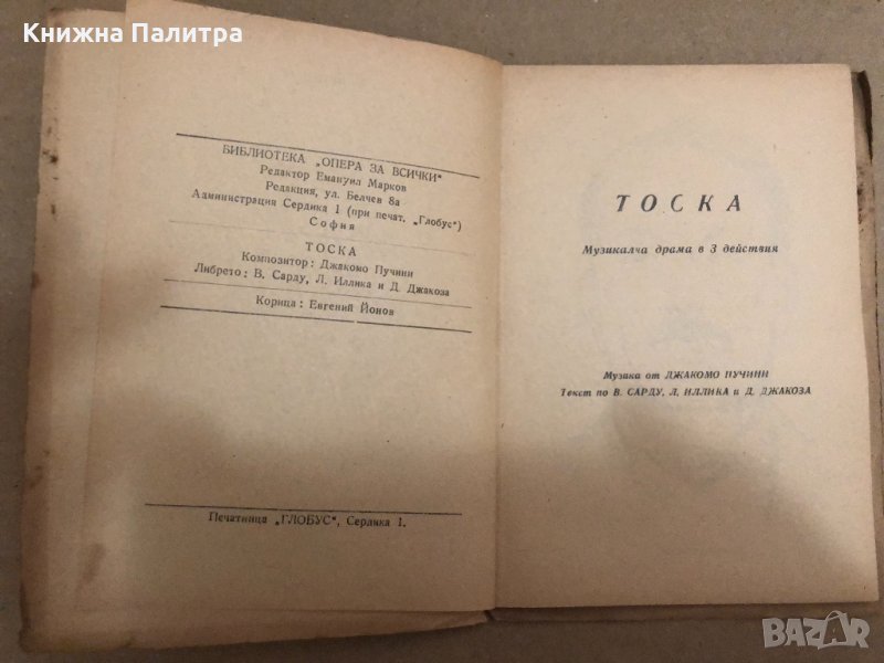 Тоска. Музикална драма в три действия-Джакомо Пучини → Обява 34558929