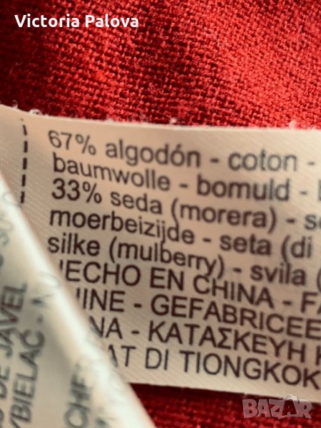 Прекрасен състав-33% коприна,67% памук,красив цвят,разкроен модел с асиметрия,цепки отстрани(12см и 25см на по-дългата част).рамене-42см,ГО-50см,дължина-67см,ръкав-53/38см