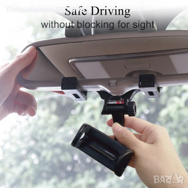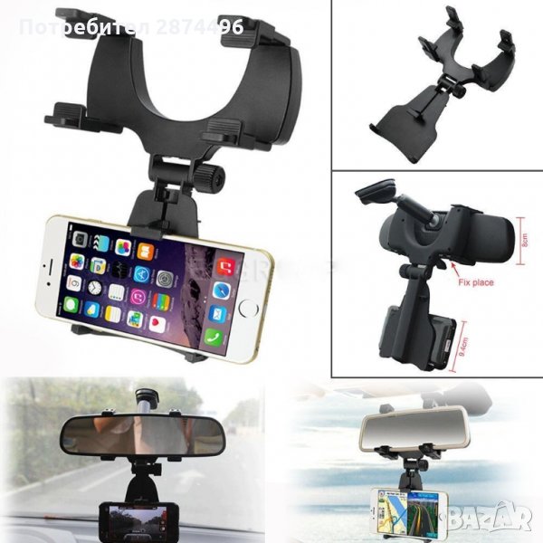 Може да се фиксира към огледалото за обратно виждане на автомобила, може да се завърти на 360 градуса, просто и практично. Има възможност за регулиране спрямо размера на огледалото и мобилното устройство.