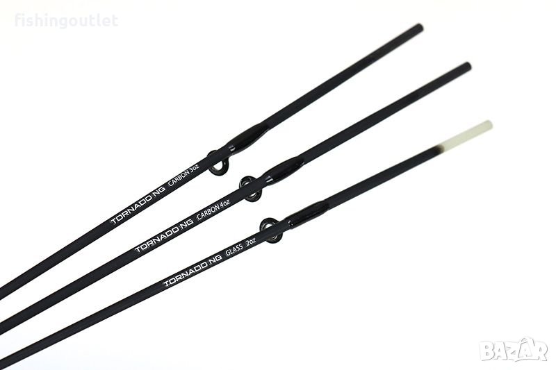 фидер пръчки, с красив и елегантен дизайн, предлагаща на привържениците на Feeder риболова различни по дължина и акция модели. Изработени са от високомодулен карбонов материал и благодарение на повече от достъпната си цена са чудесен избор както за начинаещи, така и за напреднали риболовци. Всеки модел от серията е оборудван с натурална коркова дръжка (ръкохватка), съчетана с EVA материал и метална предпазваща тапа в основата, класически винтов макародържач и SIC водачи, позволяващи употребата както на монофилни, така и на плетени влакна. В комплектът са включени общо 3 върха с различна чувствителност, позволяващи широк диапазон на действие (виж повече в "комплекта включва"). Поднасянето на хранилката се постига с изключителна лекота и прецизност. TORNADO NG FEEDER е модел със завидна здравина, на който може да се доверите на 100%, както и да изпитате максимално удоволствие от риболова си.