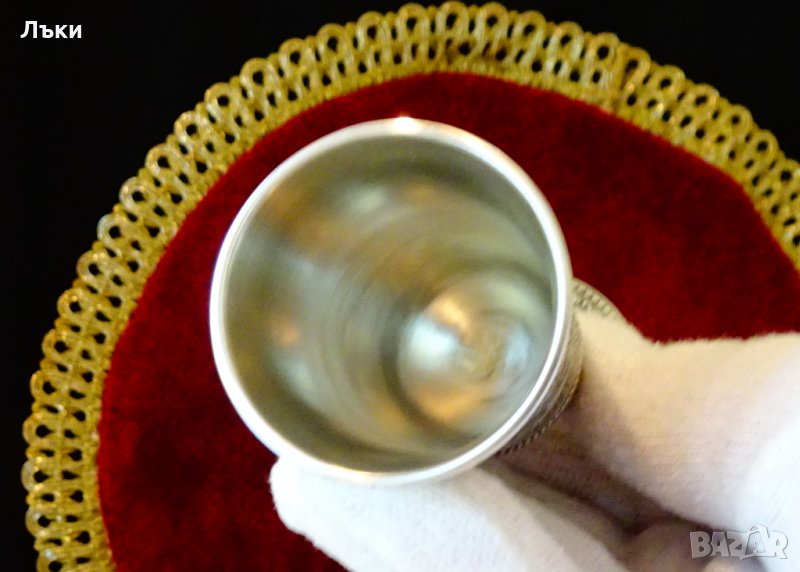 Разкошен бокал по блестящ от сребро.Височина 9.5