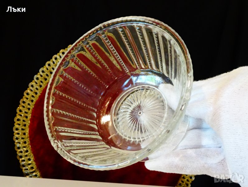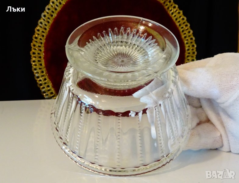 релефно стъкло.Височина 7 см.,диаметър 11 см.,вместимост 200 мл.