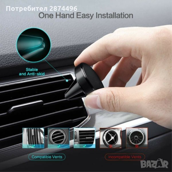 Използвайки топката, вградена в дръжката, можете да регулирате ъгъла на телефона.Силния магнит гарантират стабилността и сигурността на телефона.