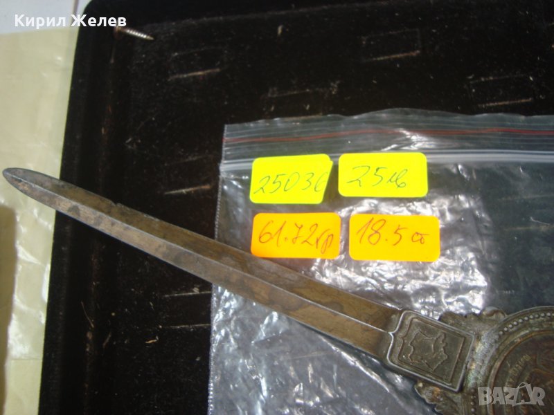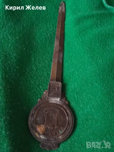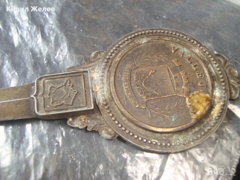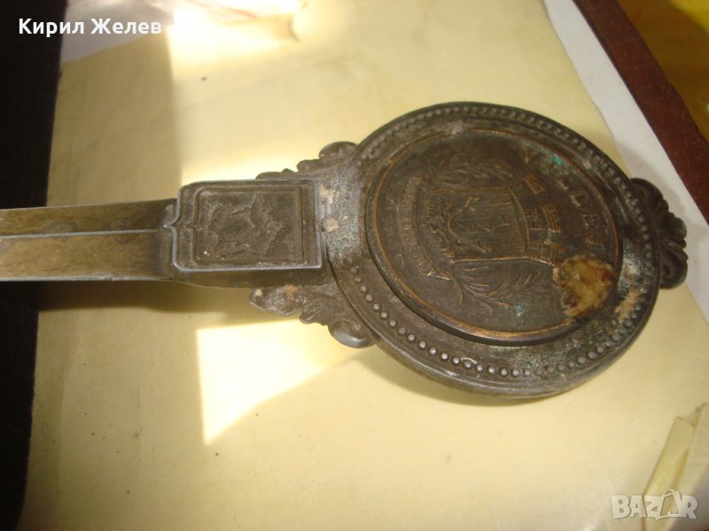 СТАР БРОНЗОВ АРИСТОКРАТИЧЕН НОЖ за ПИСМА ХАРТИЯ с ОРНАМЕНТИКА ГЕРБ 25036