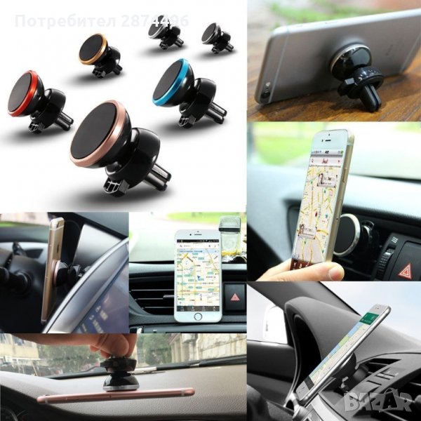 Магнитна стойка за телефон за кола, закрепваща се към вентилационната решетка