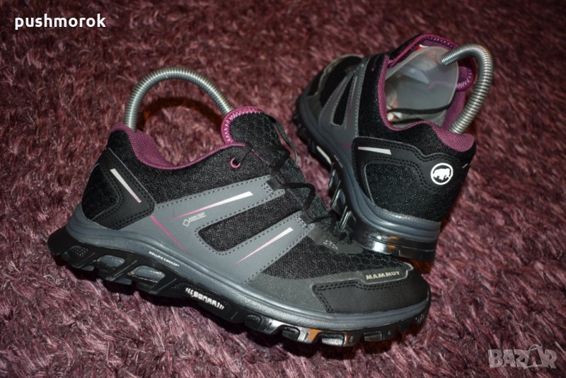 Обувка за бягане от Mammut, която е подходяща за предизвикателно бягане в планински терен или туризъм. Изработена е от дишащ мрежест материал, който подобрява вентилацията и ускорява