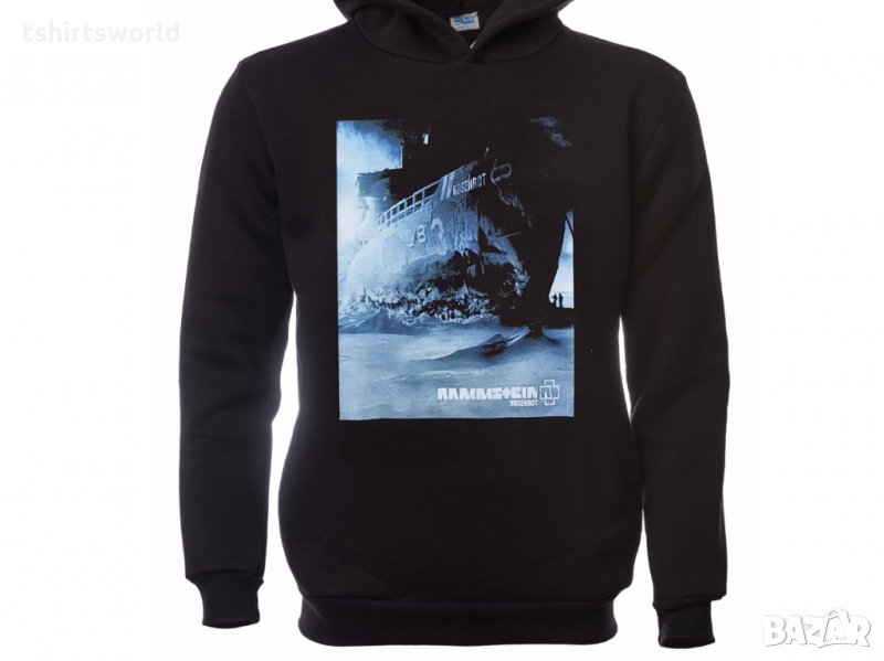суичър в черен цвят с качулка и дигитален печат на музикалната група Рамщайн,