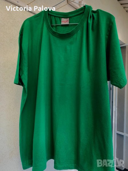 Много актуален наситен цвят памучна тениска,голям размер,но стои красиво и на по-малки размери,защото е безшевна.красив модерен цветови акцент за черно сако.рамене-55см,ГО-65см,дължина-70-71см, ръкав-25см.100% памук,неизползвана.