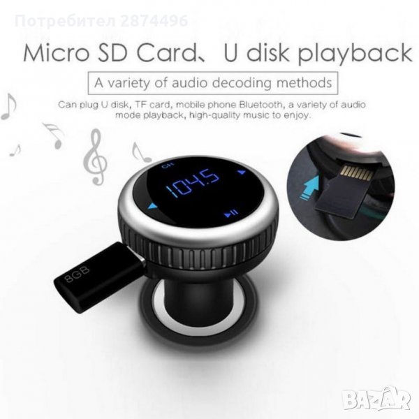 БЛУТУТ ТРАНСМИТЕР ЗА АВТОМОБИЛ СЪС СЕНЗОРЕН ДИСПЛЕЙ И USB