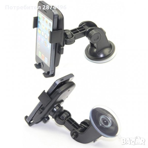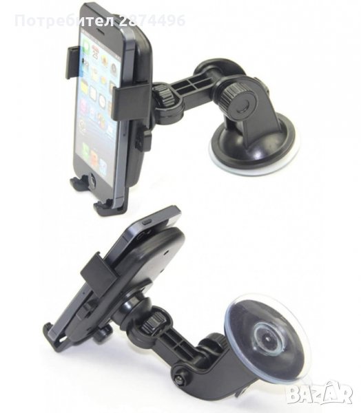 Универсална стойка с дълго гъвкаво рамо, за автомобил, подхояща за всички видове мобилни телефони, смарфони, GPS, PDА, плеъри , захващане към стъклото на автомобила с мощен вакуумВакуум вендуза със заключващ механизъм.
