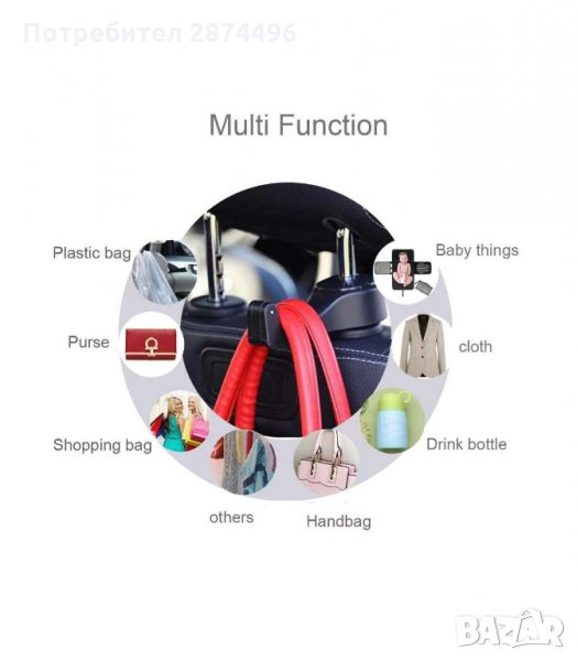 С мултифункционалната закачалка за кола можете да закачите чантите при пазаруване, куфарчета за грим, дамски чанти, чанти за боклук, чадъри и др.