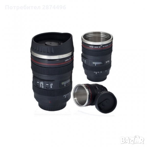 Освен атрактивната визия, имитираща фотообектив Канон, притежава удобна за захващане форма и допълнителен грайфер за повече сигурност. Капачето, с което ще предпазите напитката си от разливане, разполага и с отвор, от който може да пиете, напълно спокойни, че няма да се залеете себе си или пък някой нищо неподозиращ човек около вас.