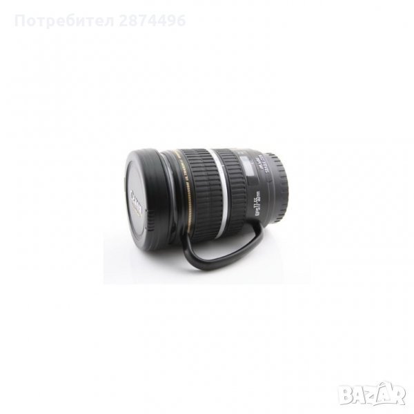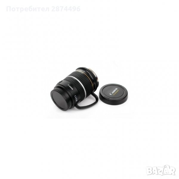 Този модел термо чаша е изключително подходящ за вас, ако искате да се отличите, да ви е удобно, приятно и да се радвате на своята любима напитка навсякъде и по всяко време. Моделът е произведен от висококачествени материали и притежава отлични топлоизолиращи качества, запазващи температурата на напитката непроменена за по-дълго време. Чашата е с дръжка за повече удобство и е страхотен избор за подарък, особено на запалените по фотографията. Визията е абсолютно копие на фотообектив Канон. Разполага и със стабилно капаче, което защитава съдържанието от разливане и ви дава сигурност при движение.