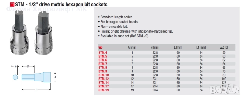FACOM STM Вложка 1/2" с накрайник шестостен - различни размери и цени → Обява 34587082