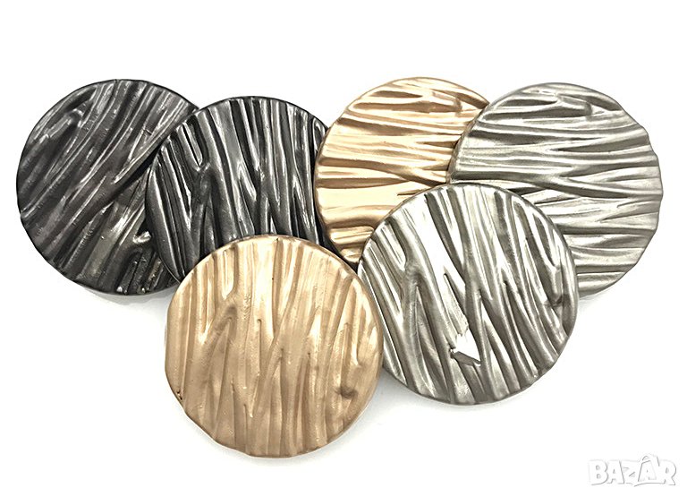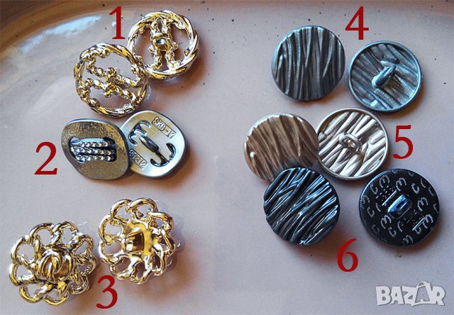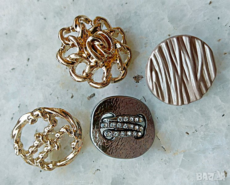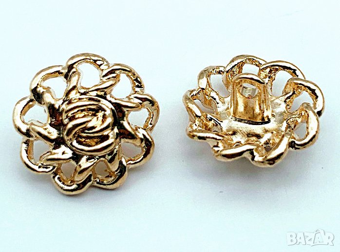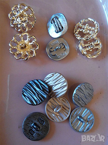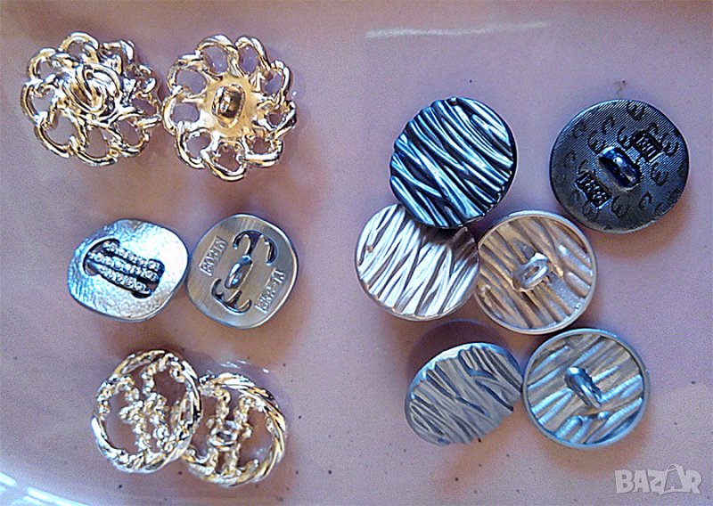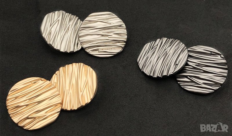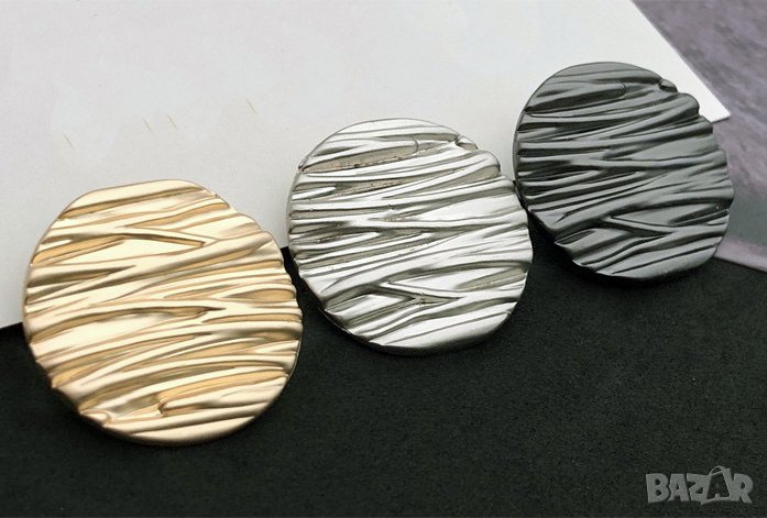 Размерът на всички е 18 мм. Със столче. Цветовете са като на снимките – златно, сребърно, сребристо черно (гънметал).