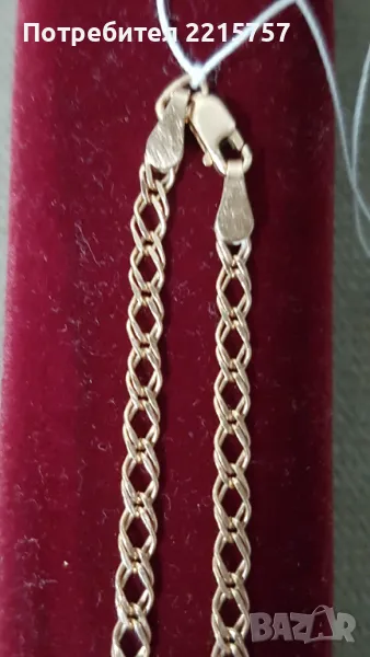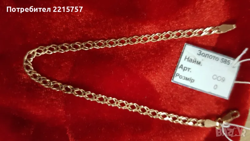 Златни обеци с бели Сапфири. Розово злато- всички маркировки клеймо, печати, проба 585 . Обеци с анг. закопчаване. От миналият век. Не носени. Рр. 2,5/1,3см. Тегло 6,65гр. Цена 1550лв...........................................................................................................2)Розово злато. Златно синджирче спираловидна плетка. Дължина 55см-4,70гр. Проба 585.ПРОДАДЕН............................................................................................3)Кръст дл.3см. Тегло 0,66гр. Маркировки проба 585.Цена 155лв .......................................................................................................................4)Розово злато. Златно синджирче с двойна плетка-Ромб. Дължина 51см-5,00гр. Маркировка: Кестен, проба 585. Цена 980лв.............................................................................................................5) Обеци модел "Ангелски крила", розово злато със Сапфири. Не носени. Проба 585. Размер 2,5см -3,58гр. Моделът 1994г.-2000г. Има всички маркировки тризъбец, проба 585. ПРОДАДЕНИ .......................................................................................................................6)Гривна розово злато, дълга 18см, тегло 2,98гр.Има маркировки тризъбец проба 585. Цена 650лв.ЗАПАЗЕНА......................................................................................................................Ретро златни и съветски изделия варират от 200-240лв/гр. Като се взима предвид : камъни, изработка и състояние.