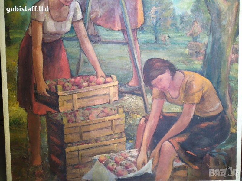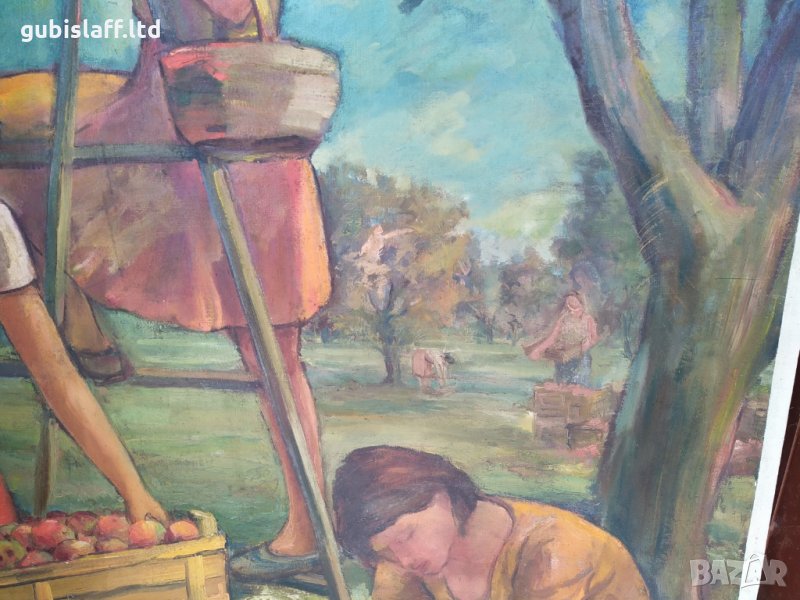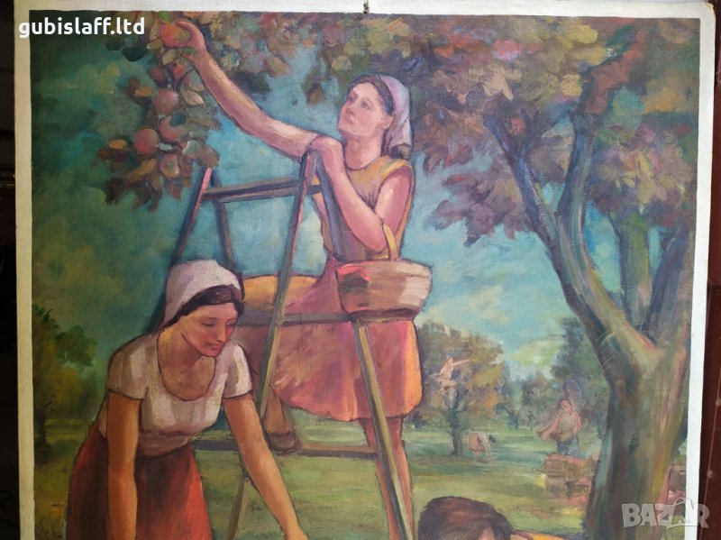 Картина, "Ябълкова градина", соц. период, 132х102 см. → Обява 34591173
