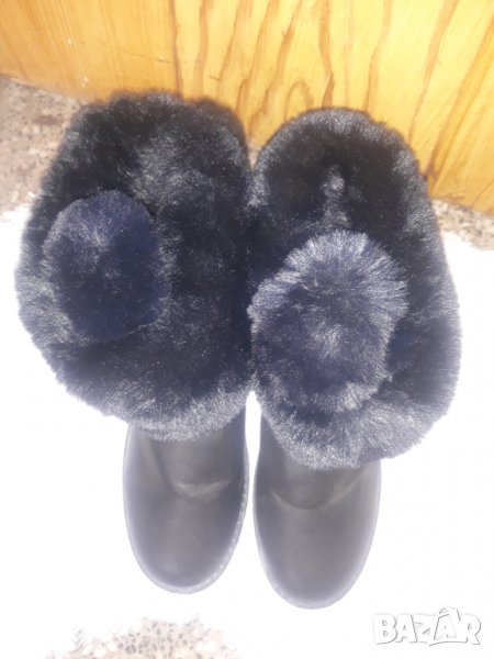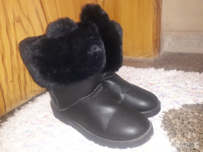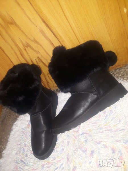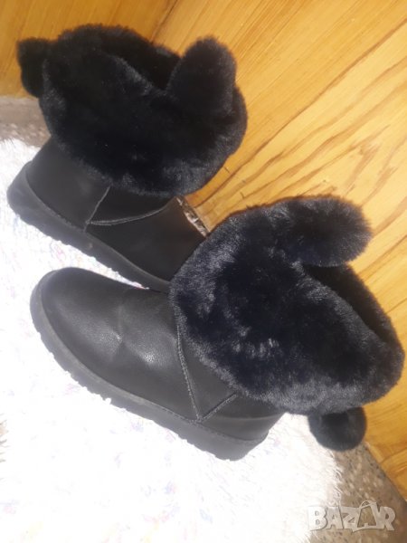 Черни къси ботуши / апрески с пухчета, топчета и уши 41 → Обява 34591513