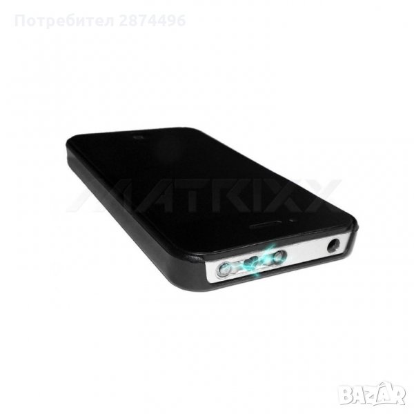 Електрошок с фенерче, копие на мобилен апарат марка iPhone.Един много удобен електрошок, който има вид на обикновен iPhone. Той работи с напрежение от 6000 KV, като с това може да зашемети всеки нападател за няколко минути, докато вие избягате на безопасно разстояние. Освен това разполага и с ярък светодиоден фенер, който ще ви помогне да осветите важни за вас предмети. Моделът работи с вградена презареждаема батерия. Подходящ за самозащита от агресивни животни и хорa!