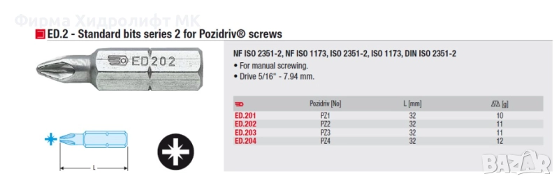 ED.202 Накрайник/бит кръстат Pozidriv PZ2