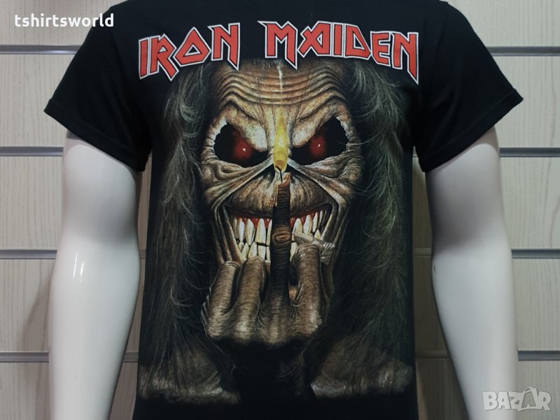 Страхотна мъжка тениска в черен цвят с дигитален печат на музикалната група IRON MAIDEN - Eddie Candle Finger