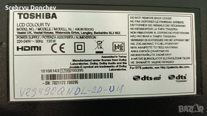 Toshiba 49U6763DG със счупен екран - захранване 17IPS72 Main Board 17MB120 → Обява 34598839