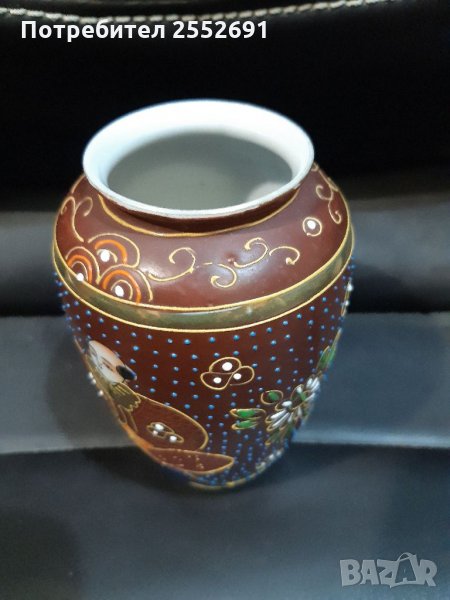 Ръчно изрисувана старинна КИТАЙСКА ваза с позлата. Наличие на фирмен надпис. Височина 12см.