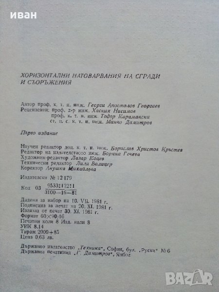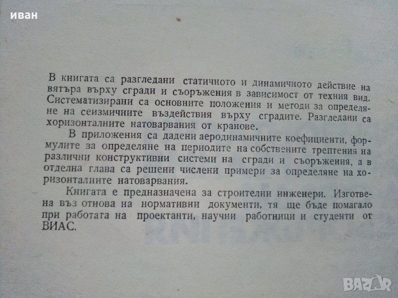 Хоризонтални натоварвания на сгради и съоръжения - Г.Апостолов - 1981 г. → Обява 34605241