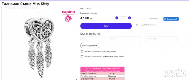 5 сребърни талисмана, всеки на цена 19.99, общо 5 броя, всички с печат 925.При закупуване на 5-те талисмана получавате подарък 1 талисман(не е от сребро). На едната снимка е качен сайта, от който са купувани талисманите.Талисманите са нови, не са носени, без следи от употреба, в кутийка.