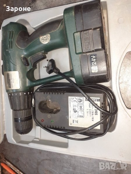 Със зарядно и батерия. Към него давам и две кутии за батерии.Батерията не държи.