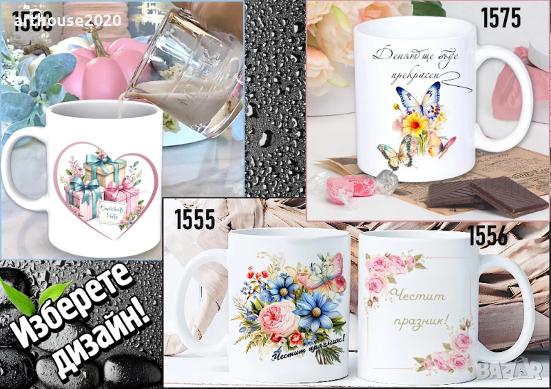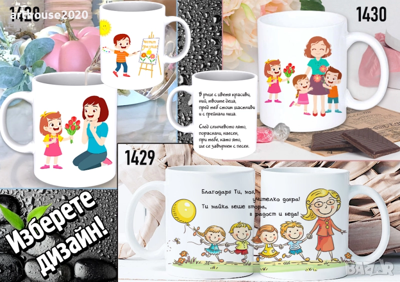 *Цената на една чаша със снимка,с дизайн по избор от предложените в обявата е: