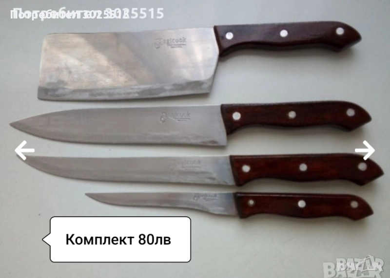 Сатър и ножове в идеално състояние. Напълно здрави. Всички са използвани, заточени и режещи.