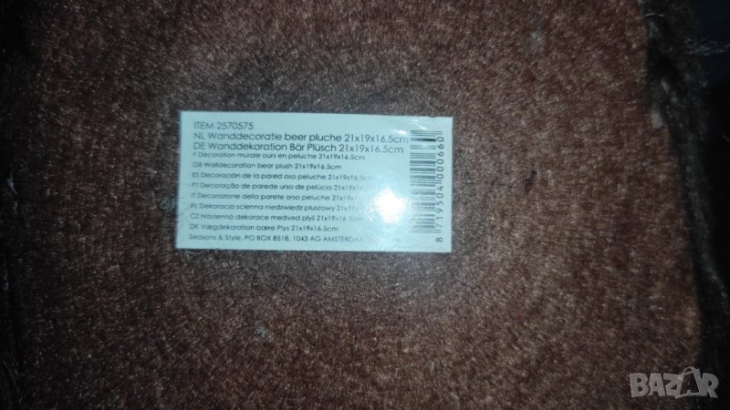 плюшена глава на мечка за декорация на стена размери 21см *19 см*13,5 закупена от Амстердам