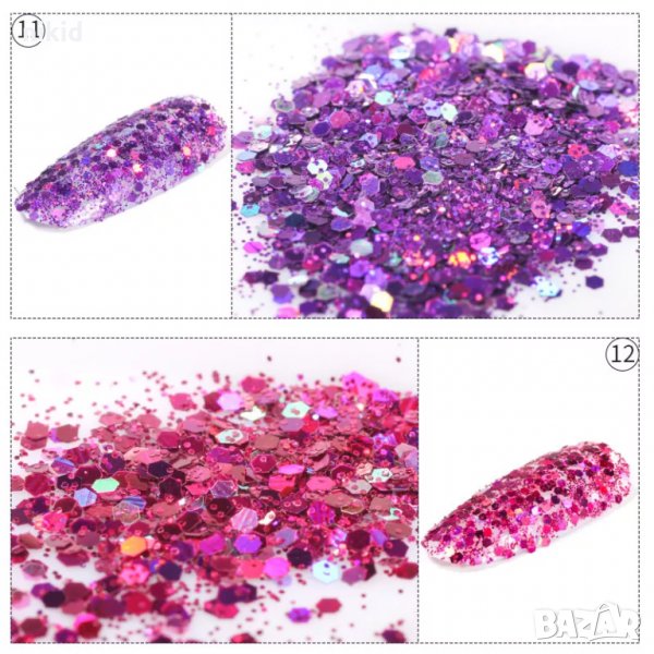 лилав глитер микс за декорация нокти маникюр конфети брокат → Обява 34616381
