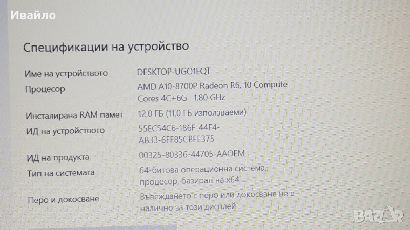 AMD A10 серия A10-8700P (4x 1,8 GHz / 2 MB кеш / 15 вата)