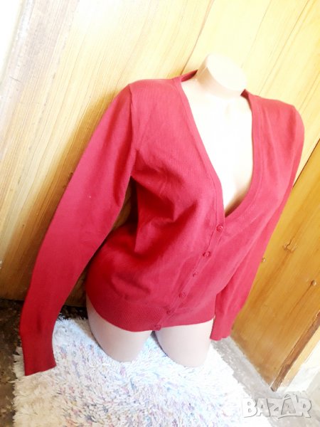Червена къса жилетка памучно плетиво с копченца М → Обява 34626576