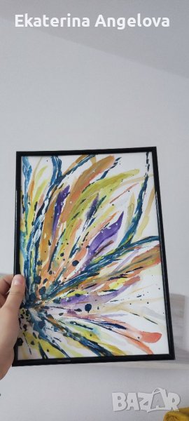 3. Абстрактна пъстра картина, лилия, лилаво, синьо, жълто, оранжево 22 Х 30 см - 40лв.